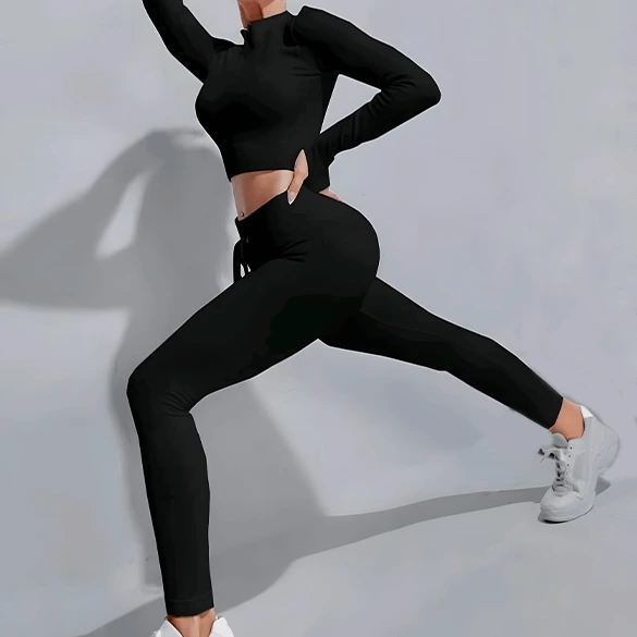 Este conjunto deportivo mujer de 2 piezas combina estilo, comodidad y versatilidad en una sola prenda. Incluye un top deportivo manga larga con cierre frontal, que brinda soporte y ajuste cómodo, junto a un pantalón deportivo para mujer de corte moderno, ideal para entrenar o usar en looks casuales.