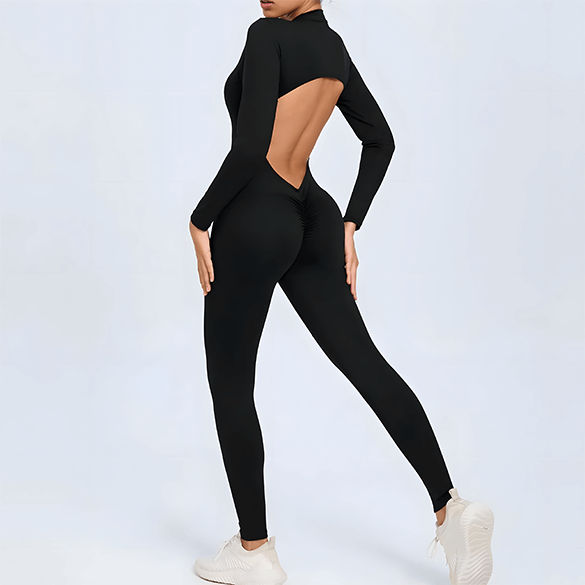 El enterizo deportivo Elena para mujer es una prenda de una sola pieza diseñada para mujeres que buscan estilo, comodidad y libertad de movimiento. Su diseño con espalda abierta y manga larga crea un balance perfecto entre frescura y soporte, ideal para rutinas activas o uso diario.